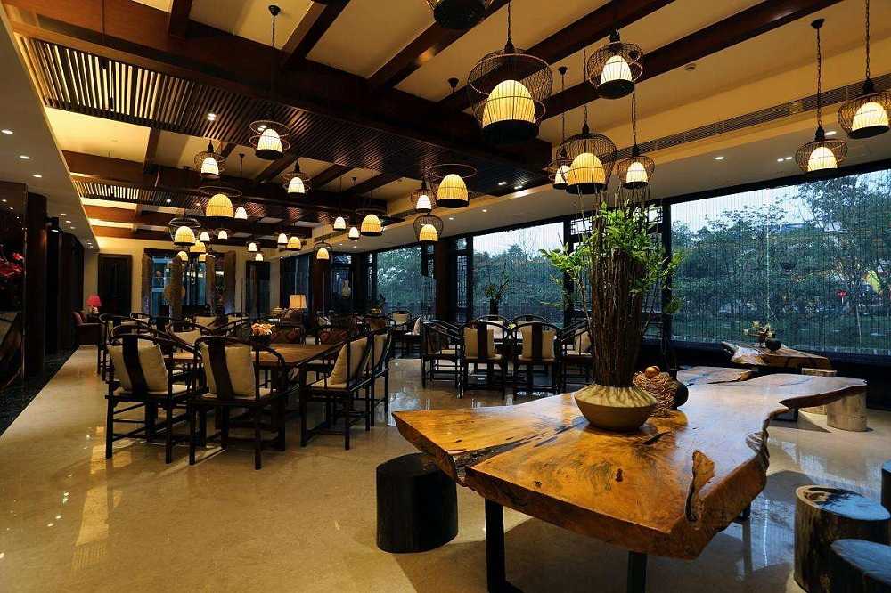 酒店以新中式的風格設計,室內自然有一股淡淡的茶香味,和一絲絲優雅、禪意氣息。酒店以最大哈的采用原木木料為建筑的主要設計材料,在裝飾上采傳統通中式的裝點茶具、檀香、插花、水墨畫、屏風等元素,在這個原本只屬于酒店大堂一隅的空間,營造出了一個平靜的禪茶世界。